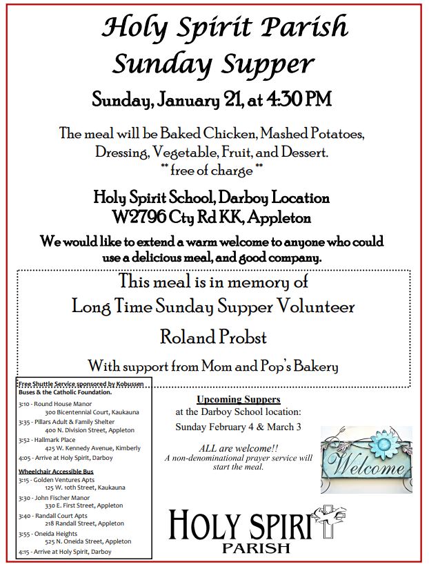Holy Spirit Parish Sunday Supper – January 21st
