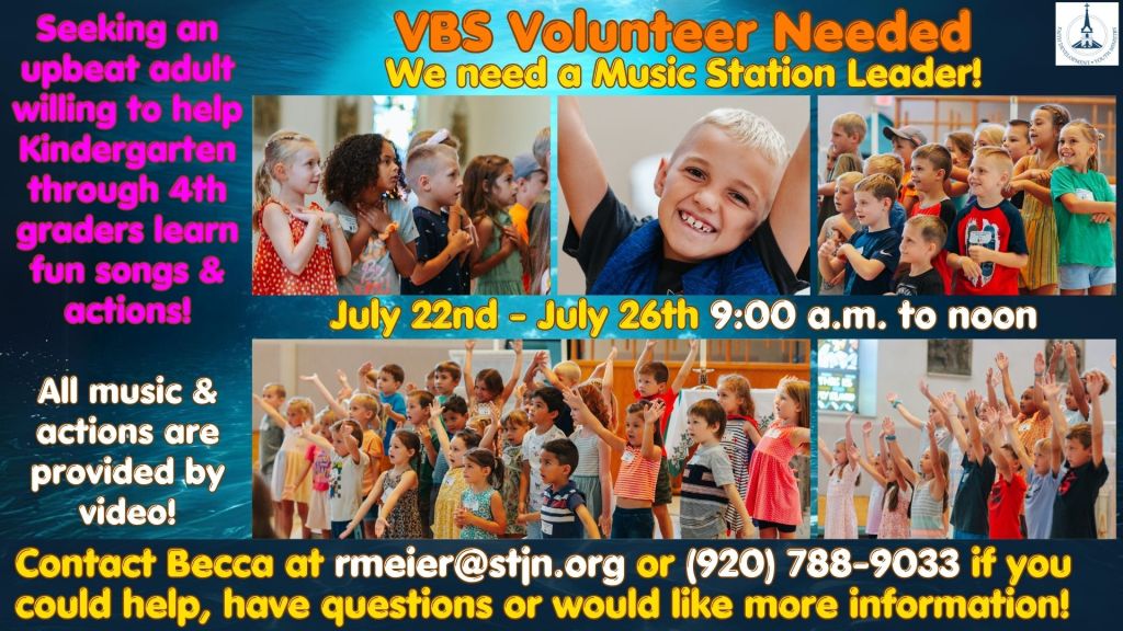 Vacation Bible School Volunteers Needed at St. John Nepomucene for July 22nd – July 26th