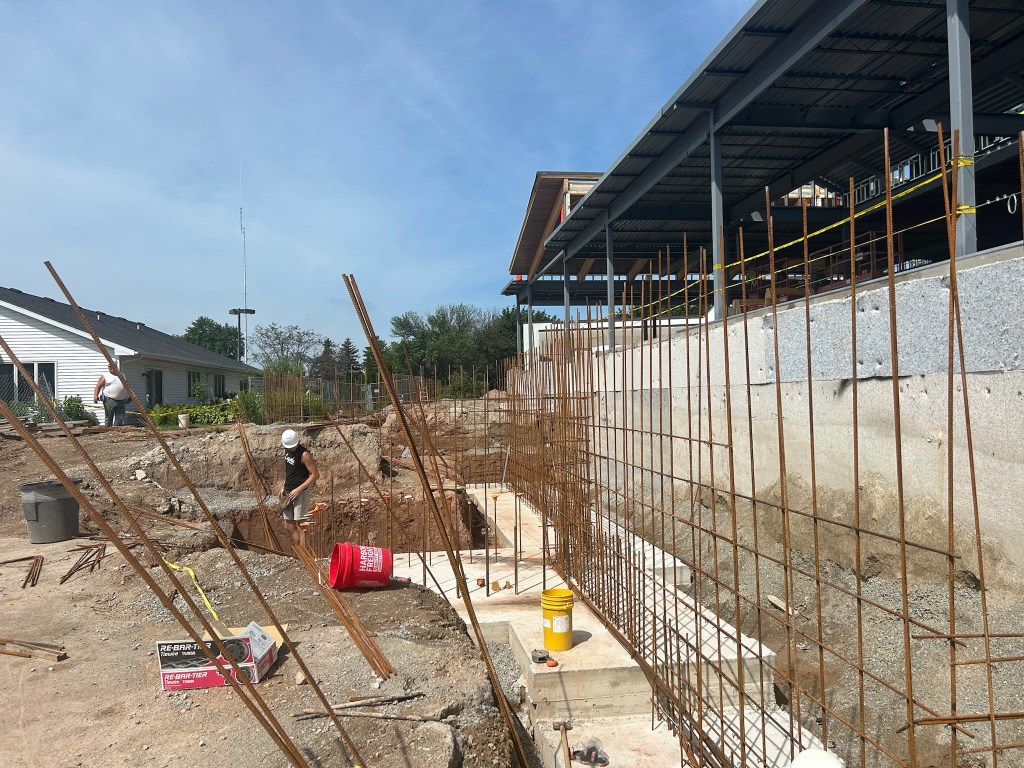 The construction site has been a busy place the past few weeks with five or six different contractors on site most days doing a variety of things. In spite of the severe storms and heavy rains we have seen in the past month, we have not experienced any damage to the construction site nor has there been any extended setbacks due to the weather. The steel work has been largely completed and the concrete work should be wrapped next week. Most of the lower level interior walls have been formed up and work has shifted to the main floor. Electrical and plumbing work is in full swing and the roof is two weeks away from completion. As we enter into the heat of the summer, I ask that you continue to pray for the health and wellbeing of all our workers.