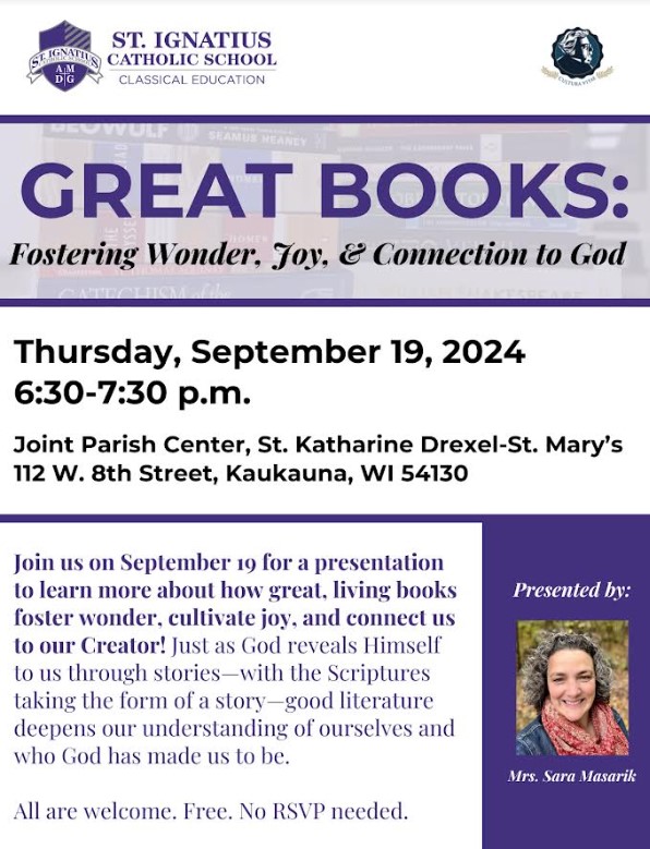 Great Books: Fostering Wonder, Joy, and Connection to God – September 19th at St. Mary’s in Kaukauna
