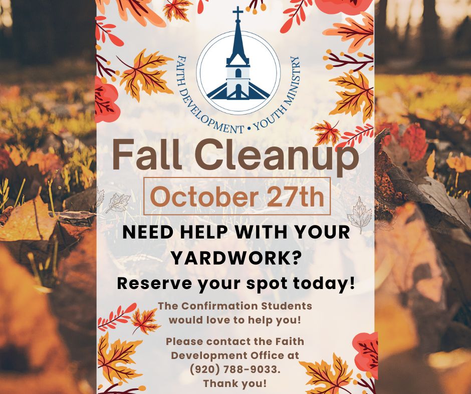 Please contact the Faith Development office today at (920) 788-9033 or via email to Kelly at: kufi@stjn.org. The Confirmation Students would love to help you out this fall!