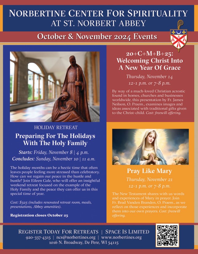 Norbertine Center for Spirituality at St. Norbert Abbey – October and November Events