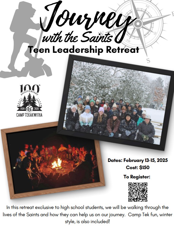 “Journey with the Saints” – Teen Leadership Retreat from February 13th – 15th at Camp Tekakwitha