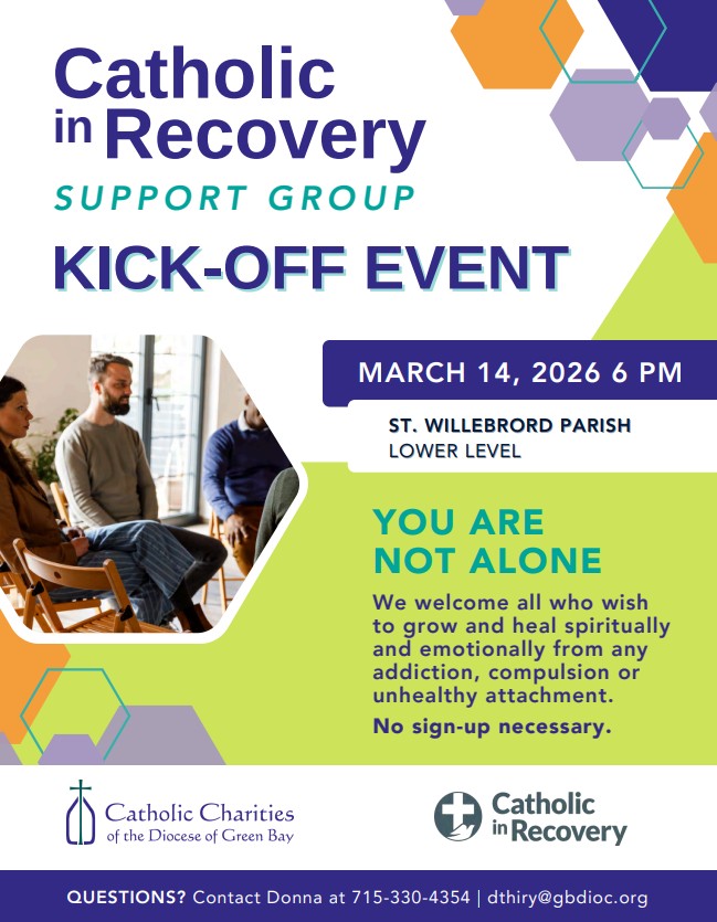 Catholic in Recovery Support Group – March 14th at St. Willebrord Parish