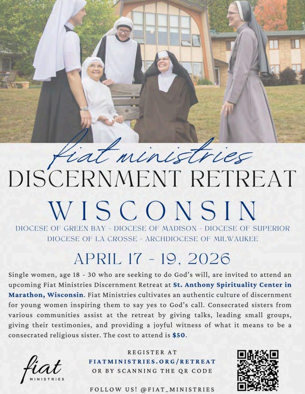 Fiat Ministries – Discernment Retreat in Wisconsin from April 17th through April 19th