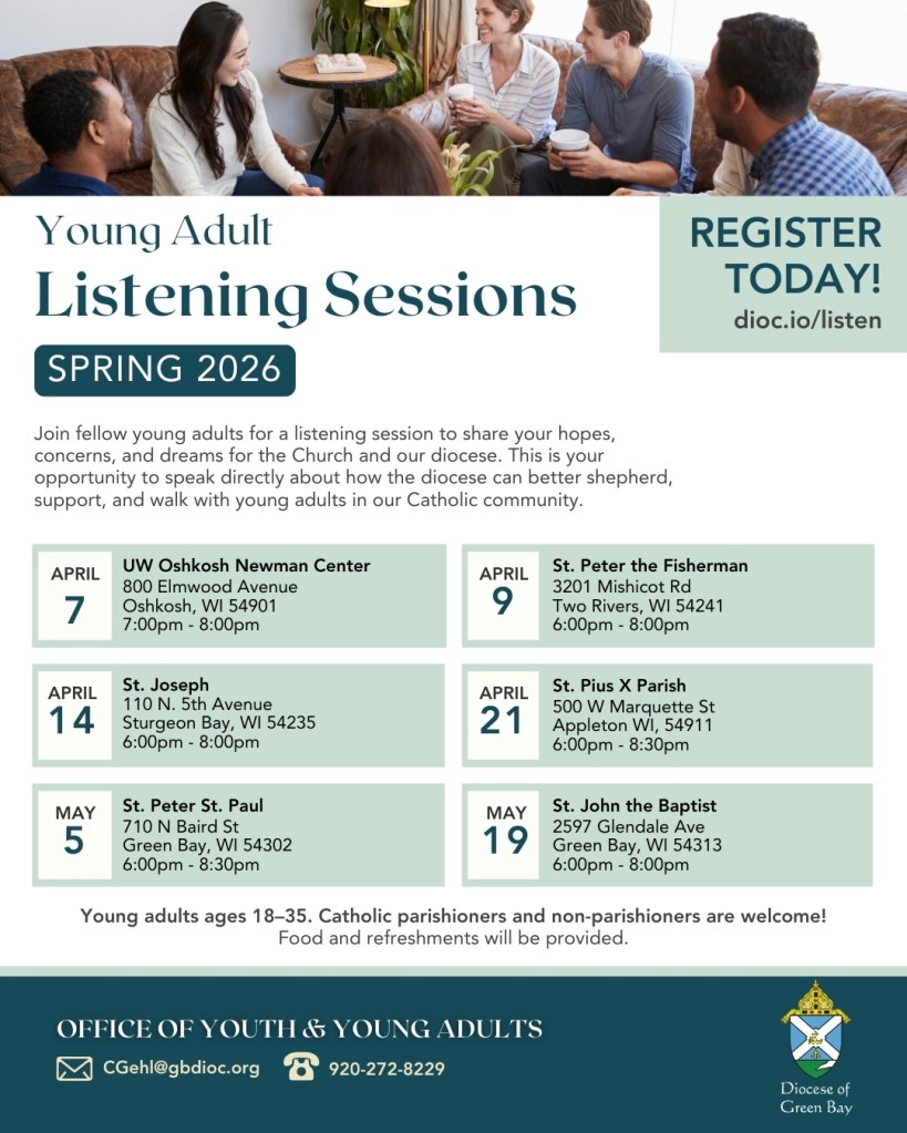 Your voice matters! Join fellow young adults for a listening session and share your hopes, concerns, and dreams for our Church and diocese. Click here to register!