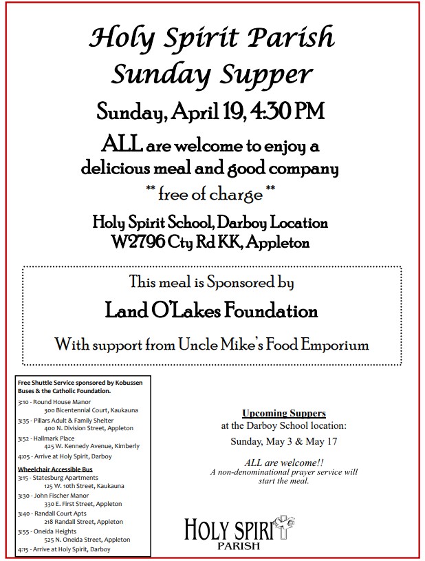 Holy Spirit Parish Sunday Supper – April 19th