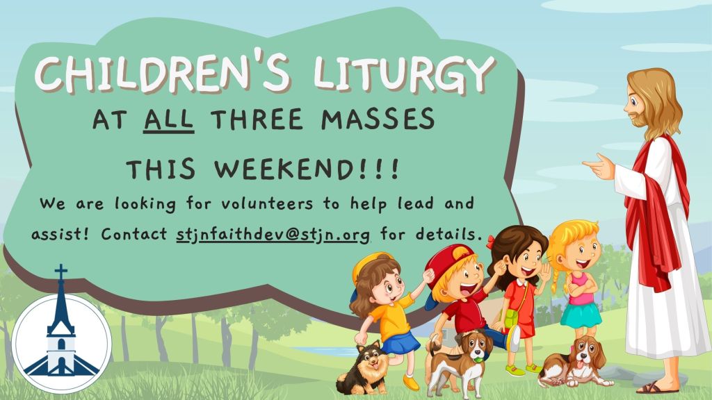 We are looking for volunteers to help with Children’s Liturgy! Click here to learn more!