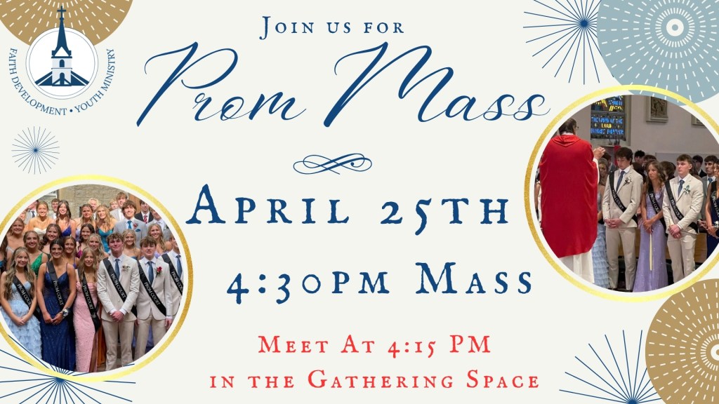 Start off your Prom with the beautiful tradition at St. John Nepomucene where you attend the 4:30 p.m. Mass on Saturday and receive a special blessing!