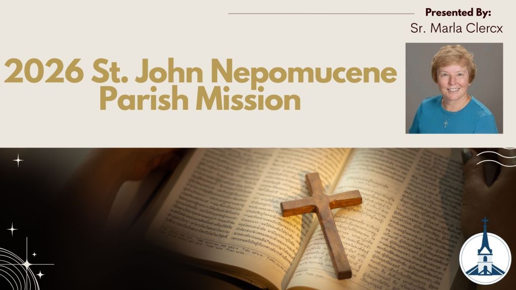 All are welcome to join us for our 2026 Parish Mission that will be held in the Atrium at St. John Nepomucene. This will occur at 6:00 p.m. on Sunday, February 22nd and on Monday, February 23rd.
