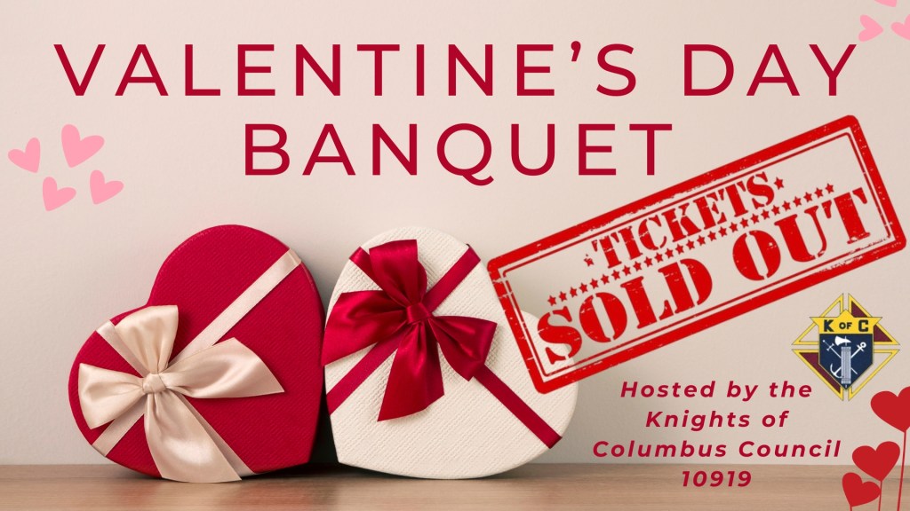 The Valentine’s Day Banquet tickets are ALL SOLD OUT for the event that is being held on February 14th in Fellowship Hall! The Knights of Columbus greatly appreciate the support!
