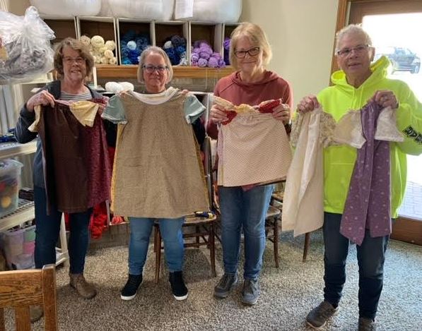 Please join us anytime from 7:30 a.m. until 4:00 p.m. on Wednesdays during the school year. We have five sewing machines and oodles of fabric to work with. We also have prayer time and refreshments at 9:30 a.m. and again at 2:30 p.m. We would love to have your help and camaraderie, and we will find something to keep you busy. Some people prefer to make items in their own homes. We will gladly provide the yarn or fabric for you.