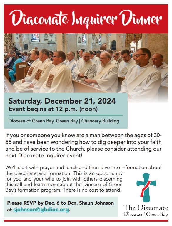 Please RSVP by December 6th to Deacon Shaun Johnson at sjohnson@gbdioc.org.