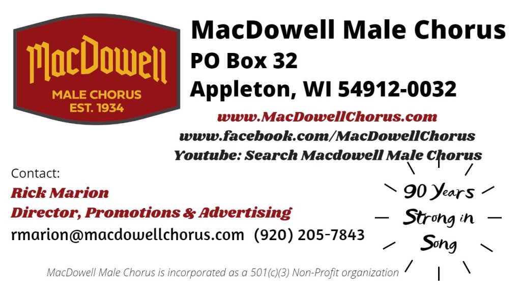 “The men of the Appleton MacDowell Male Chorus welcome Janet Planet to our 91st Anniversary Season performance stage. She will join us in song as we present a concert of hope and inspiration for a fast-moving world.