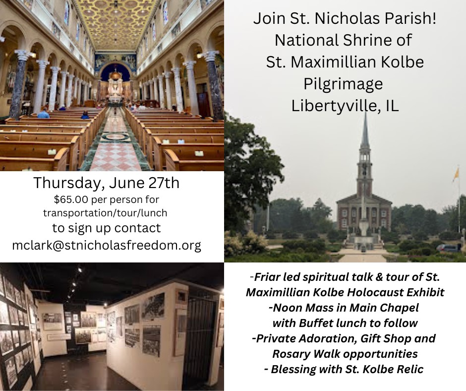 Join St. Nicholas Parish as we take a day pilgrimage to the National Shrine of Maximillian Kolbe on Thursday, June 27th!