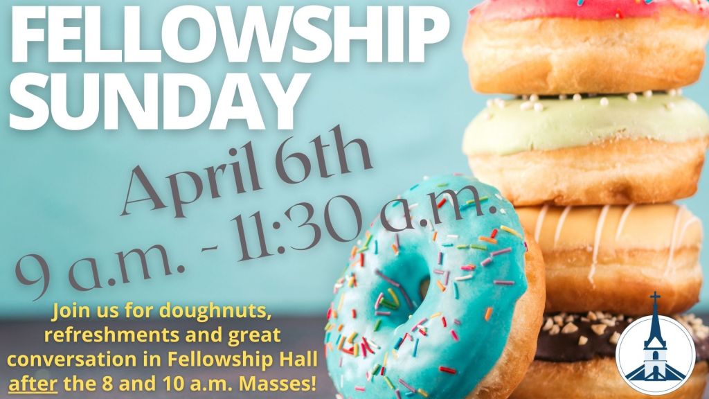 All are welcome to join us after the 8 a.m. and 10 a.m. Masses on Sunday, June 1st in Fellowship Hall for some yummy doughnuts and refreshments!