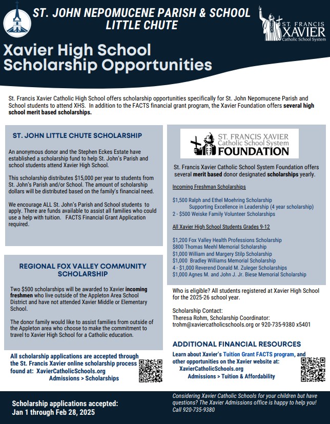 St. John Little Chute – Xavier High School Scholarship Opportunity – Deadline is February 21, 2025