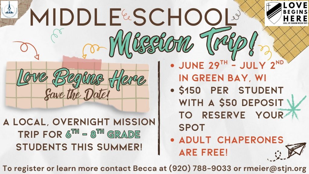 If you have any questions, do not hesitate to contact Becca at rmeier@stjn.org or (920)788-9033.