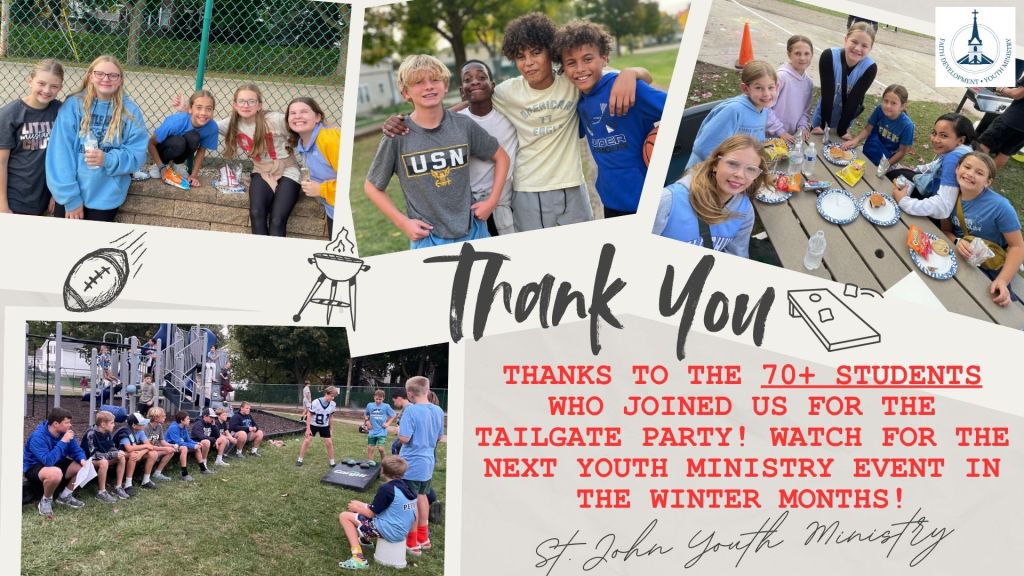 Students in grades 5th through 8th in our St. John Nepomucene Catholic Community & friends come together for fun, fellowship & an activity we can relate back to our Faith.